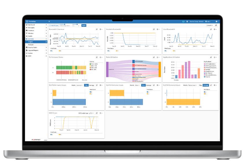FortiAIOps 3.0 的重磅发布,再次巩固了 Fortinet 在 AI 驱动型 SD-WAN 运营领域的业内领先地位,可跨整个网络为广大用户提供更精湛的智能化优势和更卓越的自动化服务。该全新平台采用全新优化仪表板,帮助用户即时可视化掌控 SD-WAN 成员接口运行状态和性能表现,直观呈现带宽耗用、应用程序利用率、平均意见得分(MOS)和 SLA 合规性等关键指标。