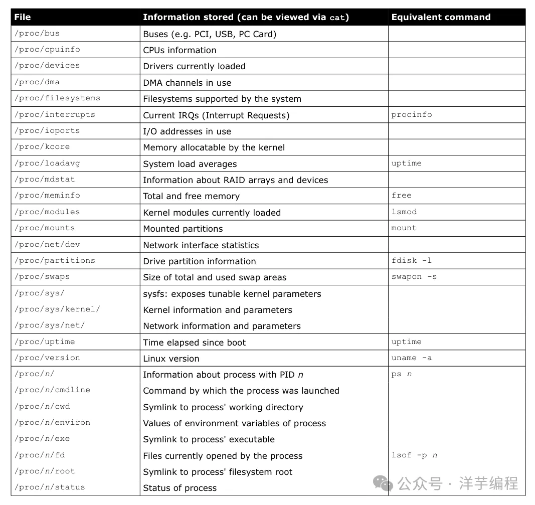 BTW, 直接读取 /proc 目录下面的文件内容,也是很多 Linux 常用命令和开源系统监控组件的实现原理。