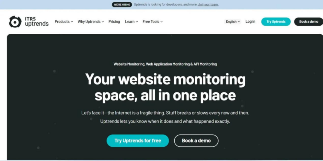 推荐理由:可以有效监控网站和服务器的正常运行时间,以获得不间断的用户体验;强大的用户监控功能可分析真实的用户交互;具备性能报告和可视化功能,能够提供可付诸行动的预警监测;平台API端点监控可确保可靠的集成。不足之处:产品价格对于小企业来说可能偏高;某些特性和高级功能需要额外购买Uptrends云服务;在移动应用程序监控方面表现较一般;使用Uptrends需要依赖该平台的生态系统。