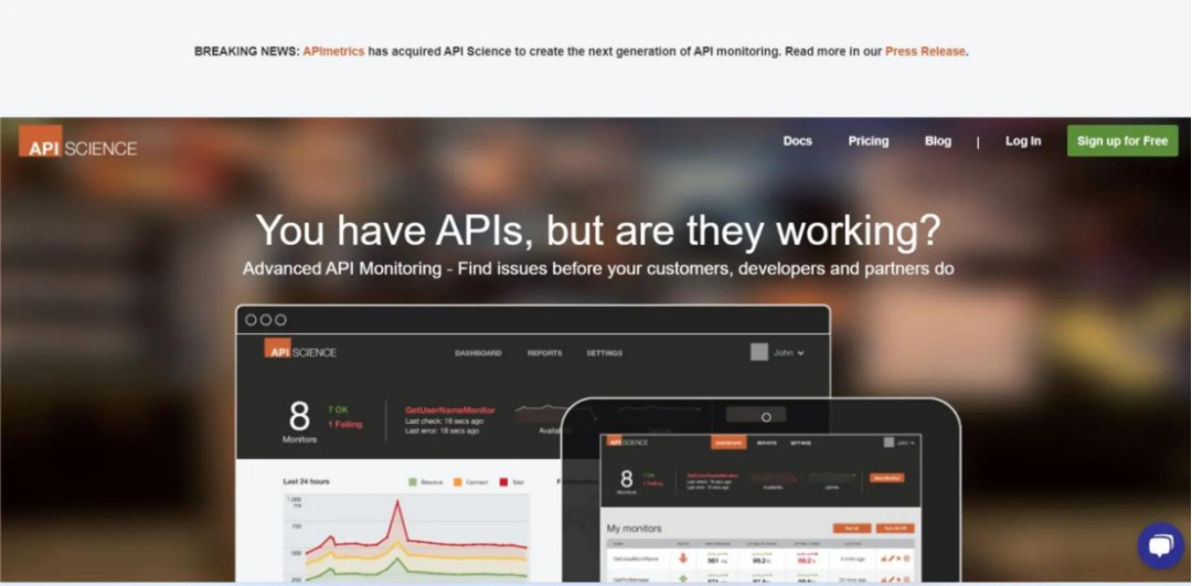 API Science是一款功能较强大的API运行监控工具,能够提供全面的API监控和性能分析。它也能够实现从全球多地区跟踪API的正常运行时间、响应时间和整体健康状况。同时,凭借详细报告、可定制警报和实时监控等强大功能,API Science能够快速识别并解决多种API应用的问题。
