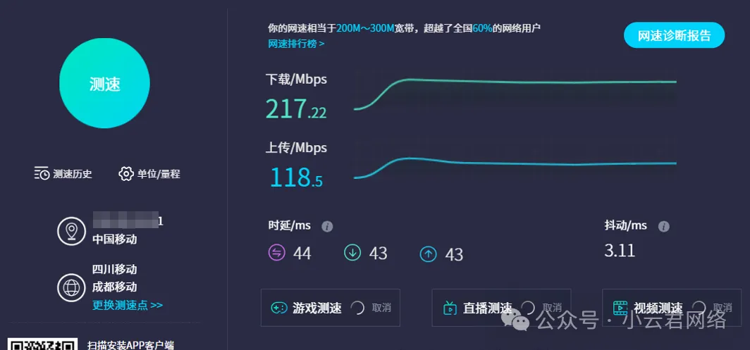 上行/下行=118M/217M,这跑个IPC的视频流2Mbps不是绰绰有余吗?为啥卡的要死?