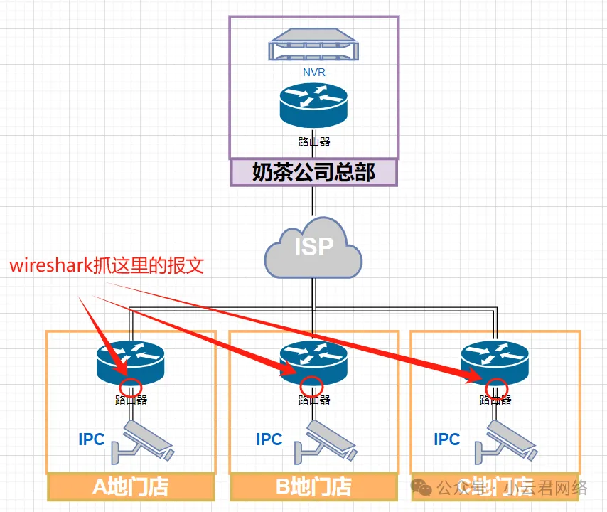 问题描述:总部和三个分支建立IPSEC VPN均正常,A、B门店的IPC网络摄像头上传到总部NVR的视频是正常的,但C门店特别卡顿。IPC的所需码流是2Mbps。