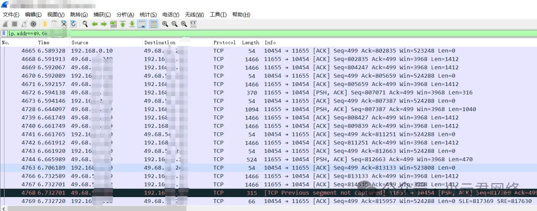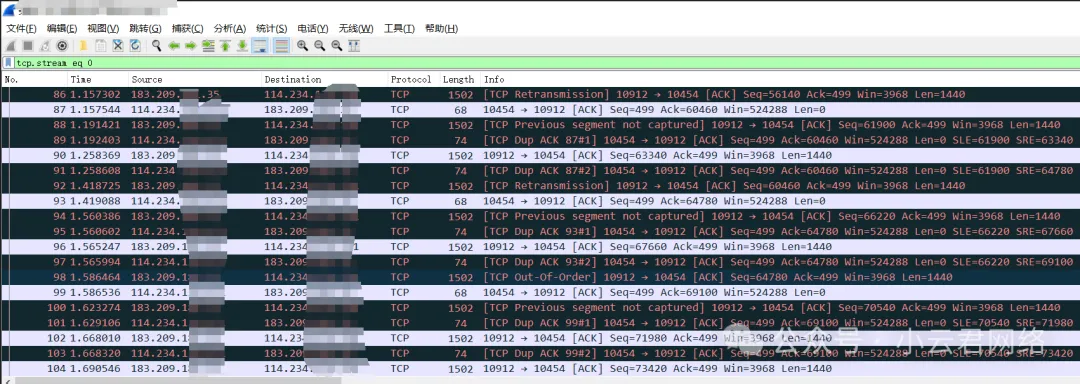 而异常C门店,TCP流大量的错序、丢包重传(黑漆漆一片)