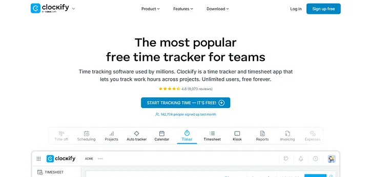 Clockify 提供精确的网页行为时间记录,帮助用户识别“时间浪费点”,并支持生成工作日志与账单记录。