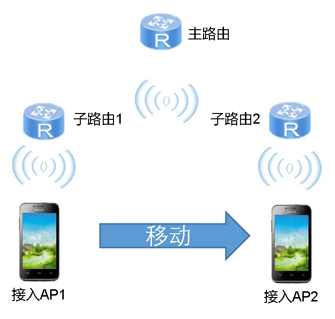 母子路由无线mesh组网,子节点配置全部受控于主路由以扩展无线信号,终端连入该SSID网络中可在不同的mesh节点之间实现无缝漫游。