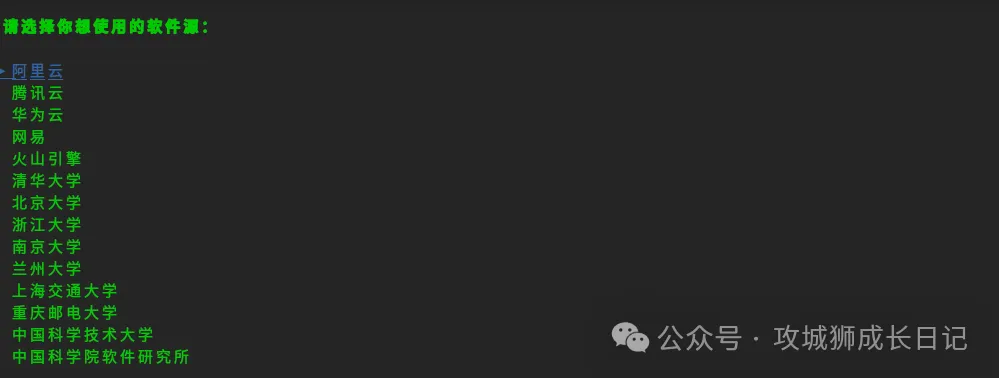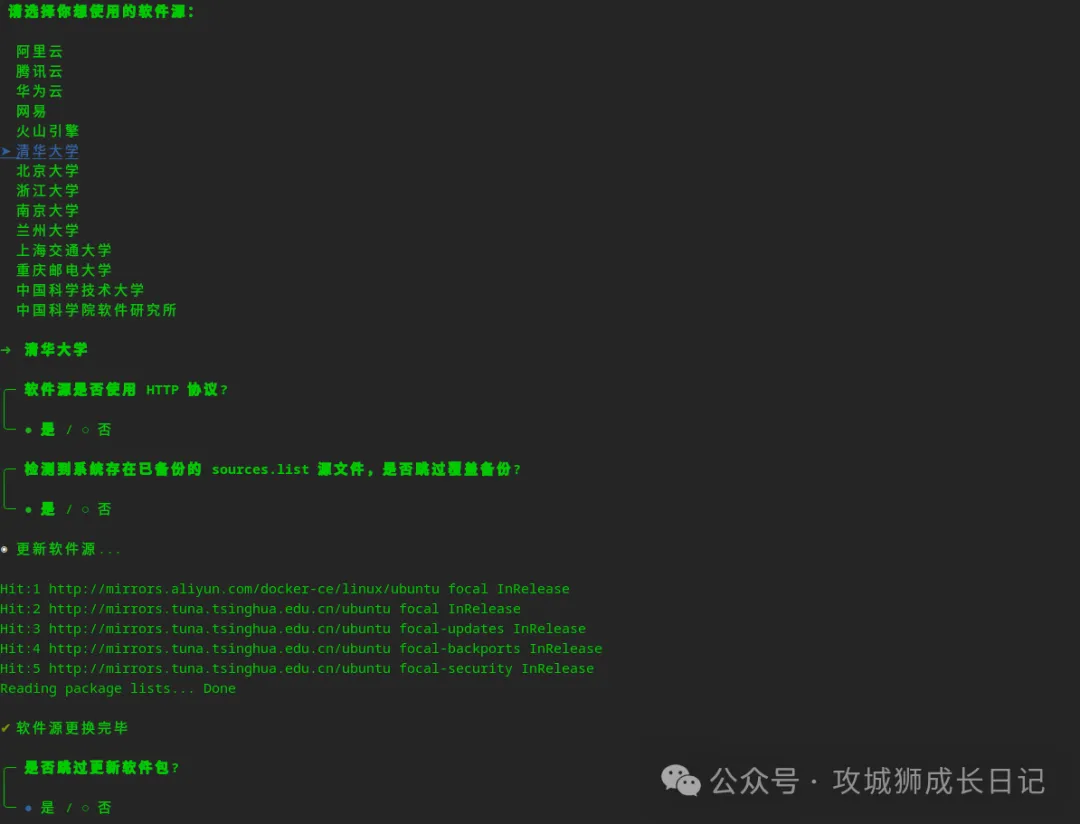 执行上述命令后,根据脚本的交互式提示,一步步继续即可完成换源。