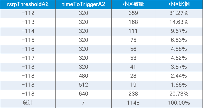 推广区域内NR小区共1148个,维持原网络配置的比例为31.27%,成功下探比例为68.73%,具体运行情况见下表。