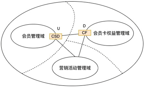 通过与业务专家沟通,采用归纳法将功能相近的用例归纳并提炼共性。例如,将用户和收银员的注册会员、查看会员信息等功能归纳为会员管理域;将会员卡储值、核销会员权益等功能归纳为会员卡权益管理域;将用户参加促销活动、企业配置活动规则等功能归纳为营销活动管理域。这些领域划分结果如图12所示。