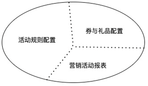 对领域的划分其实在与业务专家的沟通过程中就能很清晰地判断出来,通过用例归纳法大多是对子域进行细化和验证。而对于各个领域,我们还可以进一步细化。例如,对于营销活动管理领域,根据用户和企业经营者职责的不同,可以将其继续划分为活动规则配置、券与礼品配置、营销活动报表三个子域,如图13所示。