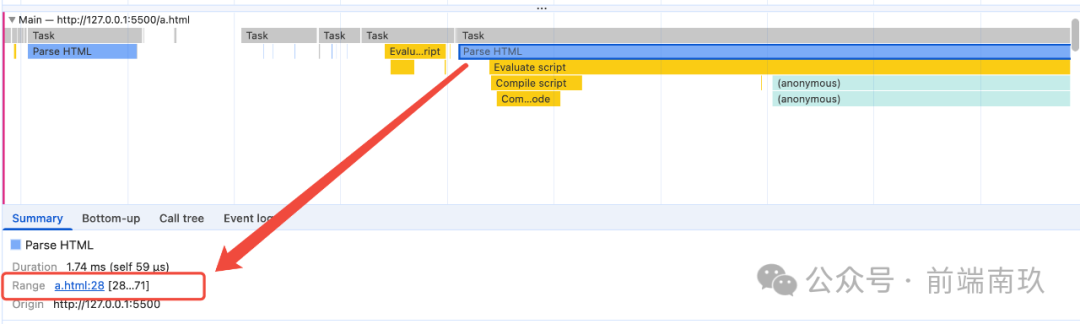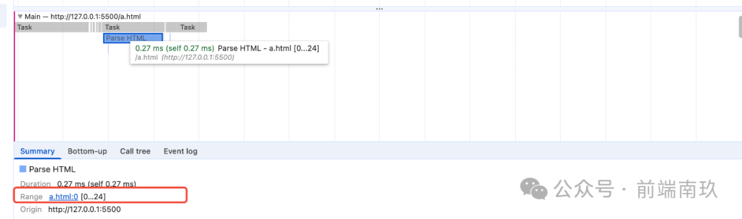 注意看,第一次解析html的范围是0-24,解析过程遇到了css资源,等css资源下载完成后会开始解析css(这个过程不会阻塞html的解析)