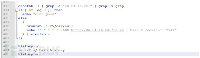 Linux系统中,ce.sh会植入每10分钟自我重下载的cron计划任务: