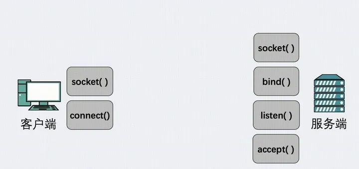 对于服务端,得到 sock_fd 后,依次执行 bind()、listen()、accept() 方法,等待客户端的连接请求;对于客户端,得到 sock_fd 后,执行 connect() 方法向服务端发起建立连接的请求,此时会发生 TCP 三次握手。