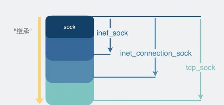 struct tcp_sock { struct inet_connection_sock icsk; // 继承自 inet_connection_sock // TCP 特有的字段,如滑动窗口、拥塞避免等相关字段 };1.2.3.4.