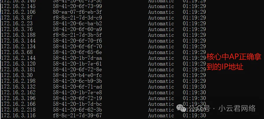 AC检查了没问题,从核心的DHCP客户端列表中查看,