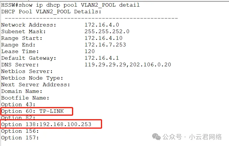 段(TP-LINK用的是这两个,华为/华三是option43和138),相关配置如下: