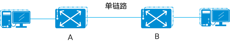 存在带宽瓶颈,设备A、B之间的总带宽等于这条单链路的带宽。链路没有冗余备份,这条链路一旦出现问题,设备A、B之间可能会出现通信中断。