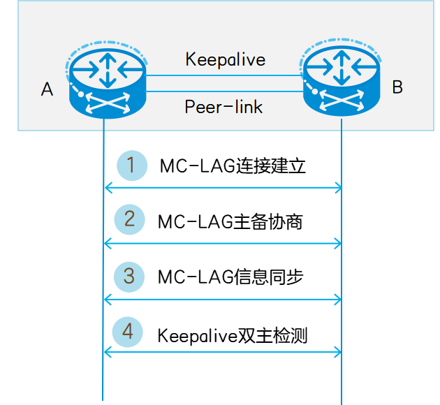 了解了MC-LAG基础概念之后,我们进一步了解MC-LAG的建立过程,包括如下4个步骤。