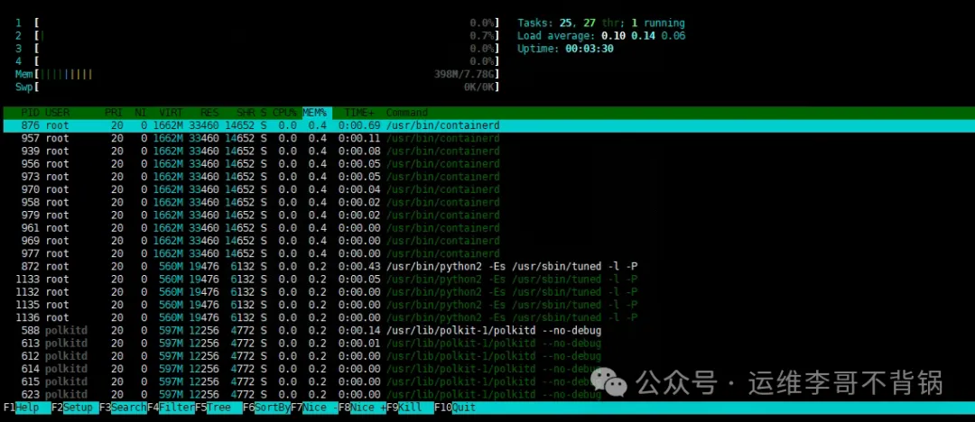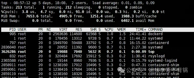 功能:实时监控进程,显示CPU、内存、负载、交换区等信息。