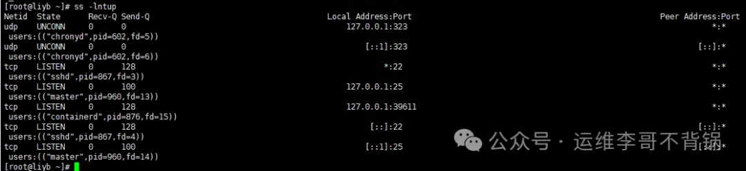ss命令也可以快速查看网络连接,通常比netstat更高效。