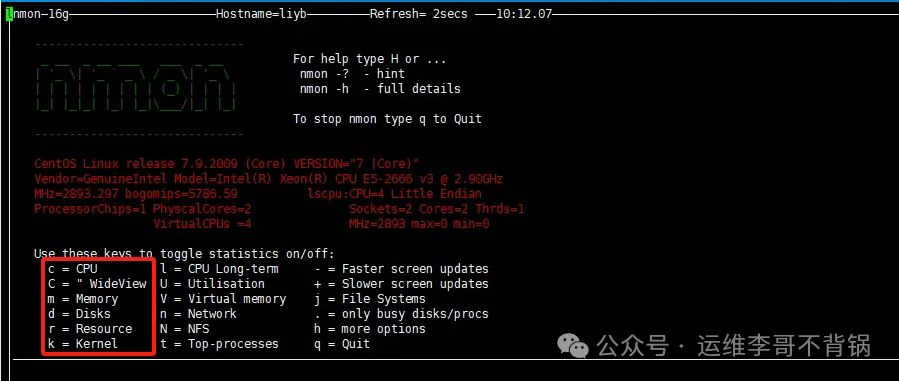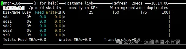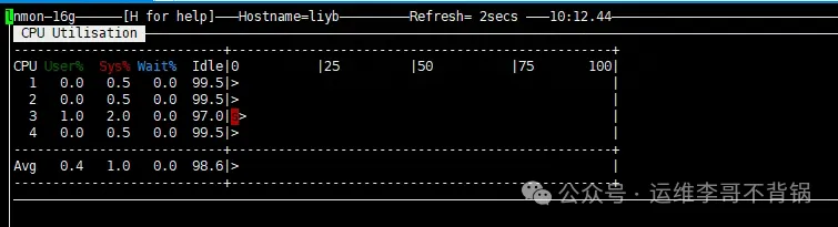 使用: 启动nmon,按c查看CPU,按m查看内存,按d查看磁盘。