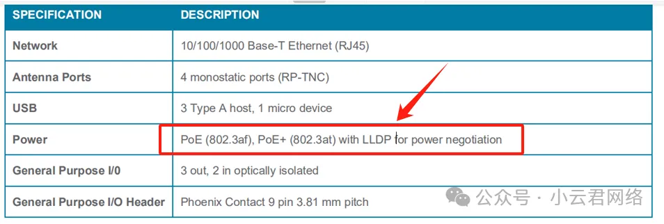 进一步查看PD设备的说明书,其需要基于LLDP PoE功率协商才能使自己工作在PoE+模式,设备的描述如图: