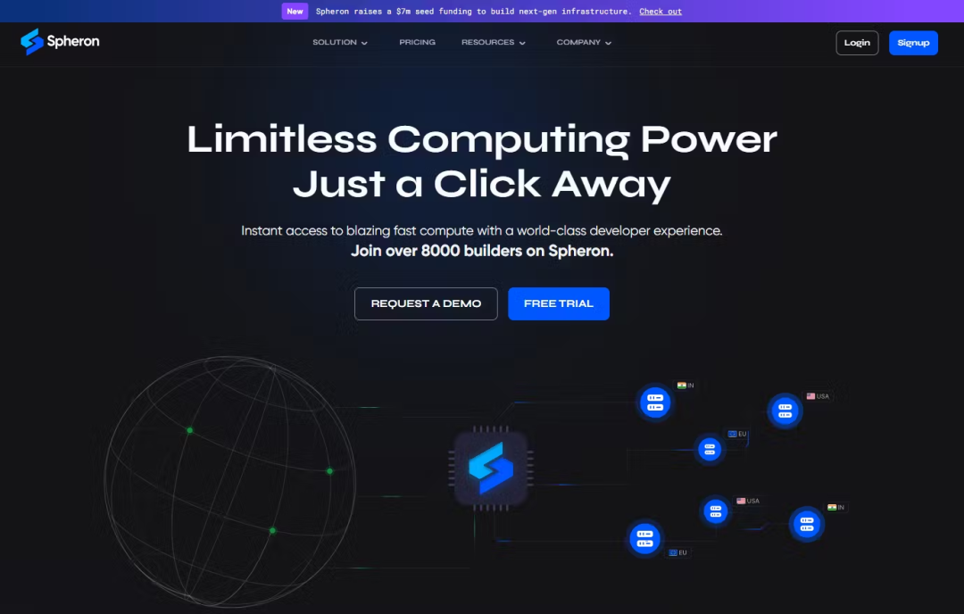 Spheron 满足计算要求:私有映像、自动缩放实例、按需缩放、实时实例指标、更快的 GPU、免费带宽、Terraform 提供程序和 SDK、实例运行状况检查、活动、shell 访问等。Spheron 通过其全球 CDN 提供用于长期数据存储和边缘带宽加速的附加存储解决方案。借助 Spheron,您只需几分钟即可轻松设置节点,并享受较低的维护和运营成本以及出色的开发人员体验。