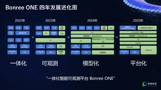 博睿数据总裁孟曦东表示,过去,博睿数据提供的是单一工具,自 2022 年切入可观测性赛道以来,通过持续迭代产品,逐步构建了一体化智能可观测平台 Bonree ONE,覆盖端到端链路分析、AI 算法集成、统一数据模型等核心方面,帮助企业构建全域观测能力。