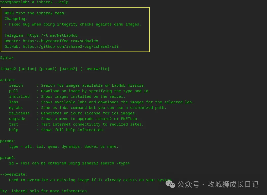 以上命令会将脚本下载至 /usr/sbin/ishare2 并赋予可执行权限,随后直接运行即可进入交互式帮助界面。