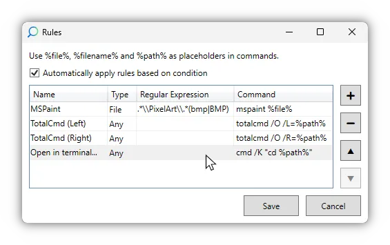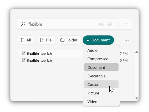 EverythingToolbar 读取在 Everything 中预先定义的自定义过滤器。要启用此功能,请在 EverythingToolbar 设置中检查 Use Everything filters 选项。