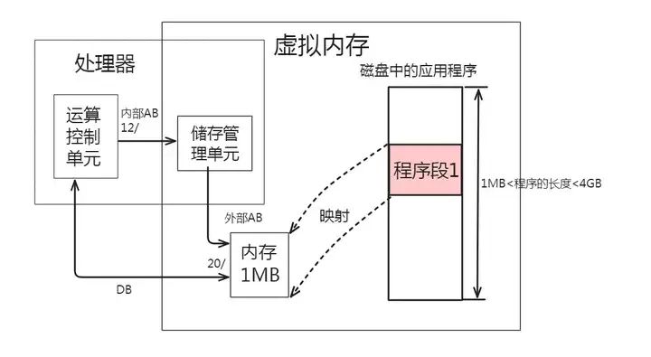 综上所述,虚拟内存技术的实现,是建立在应用程序可以分成段,并且具有“在任何时候正在使用的信息总是所有存储信息的一小部分”的局部特性基础上的。它是通过用辅存空间模拟RAM来实现的一种使机器的作业地址空间大于实际内存的技术。