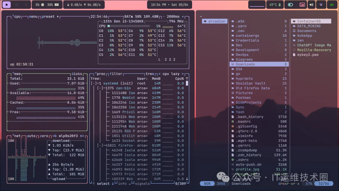 性能优化:继承Hyprland轻量化基因(内存占用<200MB)视觉增强:整合亚像素抗锯齿渲染与实时窗口特效生产力工具链:覆盖GUI到CLI的完整工作流支持二、核心组件与特色