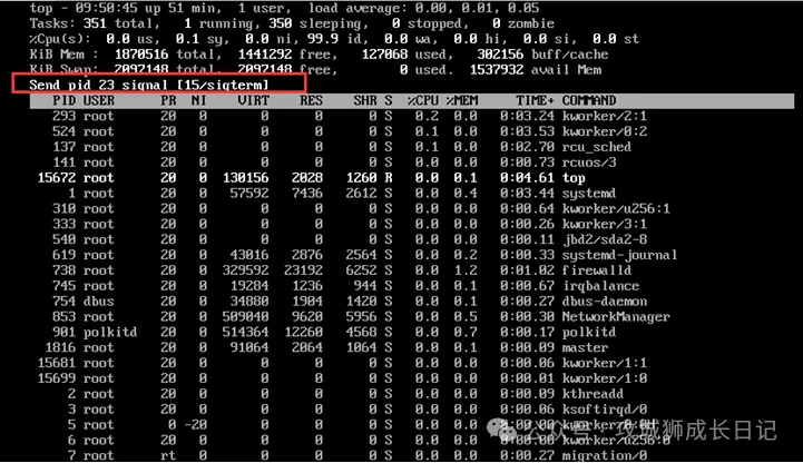 操作成功后,界面上会显示类似Send pid 23 signal [15/sigterm]的提示信息。这时,只需轻轻按一下Enter键确认就可以了。