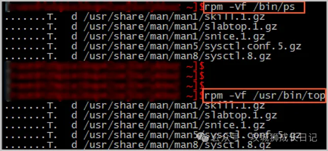 在一切正常的情况下,系统不会返回任何修改信息。如果遇到异常情况,系统会显示类似以下的信息,这通常意味着ps和top命令可能已经被修改了。