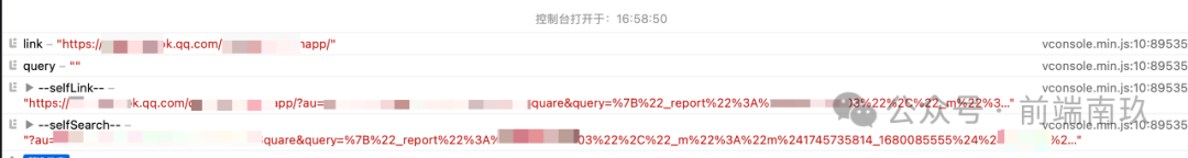 可以看到通过读取内联脚本挂在window上的selfLink、selfSearch可以正常获取,而直接读取window.location.href会丢失search参数。