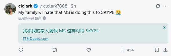 在 Skype 的告别评论区,不少用户难掩失落。一位老用户愤怒留言:“我和我的家人痛恨微软这样对待 Skype。”