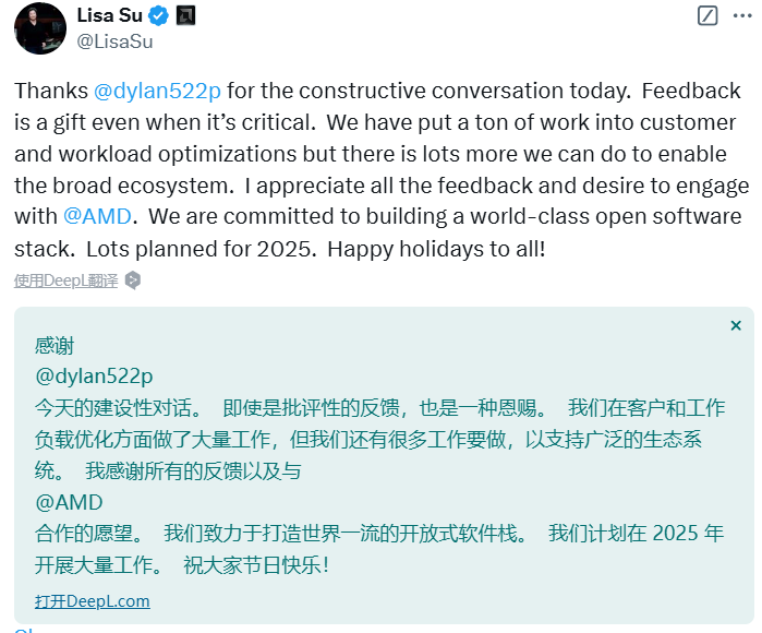 苏妈承认 AMD 软件栈中存在缺陷。并且也大方回复,表示听劝。
