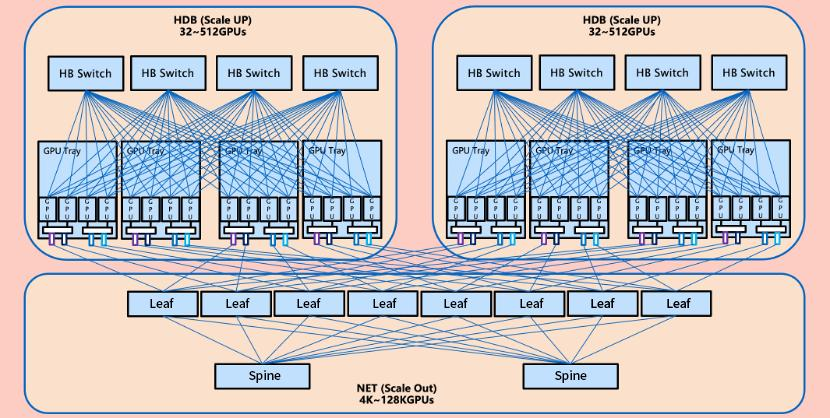 超节点的HBD(超带宽域)越大,Scale Up的GPU越多,Scale Out的组网就越简单,大幅降低组网复杂度。