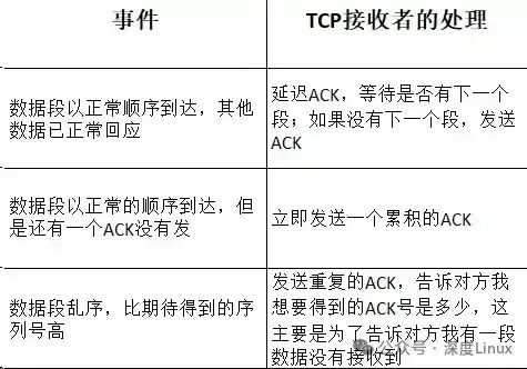 当从应用程序中接收到要发送的数据后,进行创建分段。当发现某一个段的回应号超时,需要进行重传,这是为了确保TCP的数据到达对方的一个方式。当看到对方回应ACK时,要对ACK进行处理,主要是看数据是否到达了对方。⑵TCP的接收方对ACK的处理方式