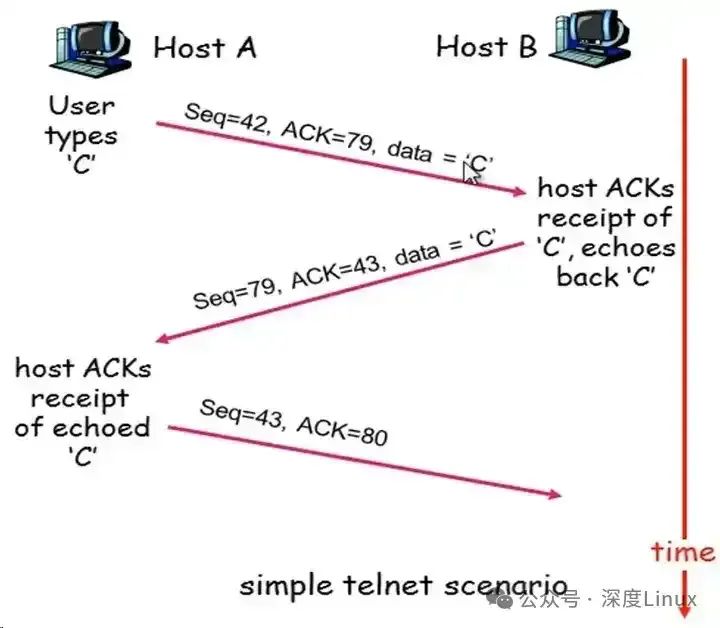 注意:ACK与下一段的数据一起发送。TCP会将ACK和数据封成一个包,也叫作delay ACK。