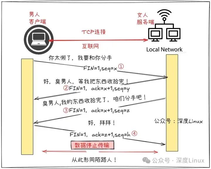 “四次挥手”的通俗理解: