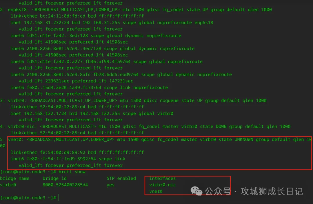 当你启动ubuntu-cloud虚拟机时,会发现多了一个名为vnet0的网卡。这个vnet0网卡的作用是连接ubuntu-cloud虚拟机到virbr0交换机。可以想象成一根网线,一端连接ubuntu-cloud虚拟机(通过其内部的虚拟网卡),另一端连接virbr0交换机(通过vnet0)。简而言之,vnet0是为了让ubuntu-cloud能够与virbr0通信而专门设置的虚拟网卡。运行brctl show命令可以帮助你更清楚地看到virbr0和vnet0之间的关系。