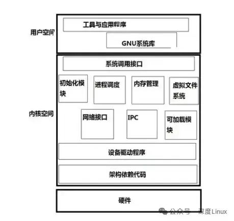 为了更直观地理解 VFS 在 Linux 内核中的地位,我们来看一下 Linux 内核架构图: