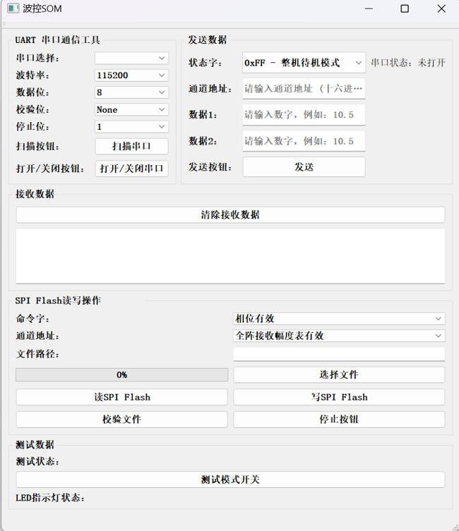 本方案集成了波控处理控制软件算法,通过波束控制FPGA软件实现,主要用于接收信号处理机的工作模式控制信号、T/R控制、LD加载控制信息、数据加载和波束指向控制信号,完成对相控阵天线接收通道校准、发射通道校准、补偿表加载、波束指向控制、T/R开关切换等功能。本方案配有上位机软件,方便开发人员验证使用,实现模拟信处通信功能、角度补偿Flash读写及模拟TR组件通信功能。