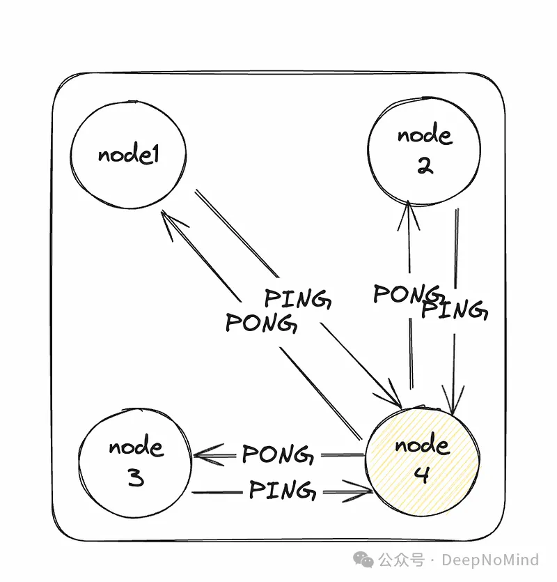 其他节点定期发送 PING 消息,探测领导者状态,并等待领导者的 PONG 响应。