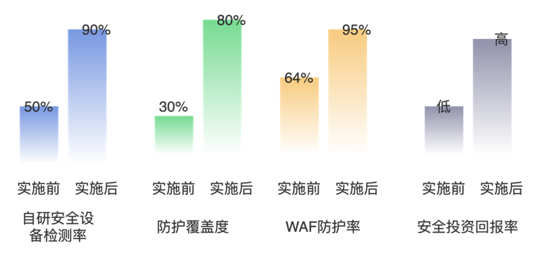 长亭科技通过对WAF、全流量、IPS等产品的多次认证,实现WAF阻断率从64%提高到95%,检测率从73%提高到100%,全流量检测率从85%提高到100%;华云安利用BAS验证发现WAF攻击防护能力失效率高达96%,主机/终端安全产品的防御有效率为41%,并且精准识别到了防护弱点问题的原因;绿盟科技利用BAS持续验证和优化,实现WAF防护率从40%提升至90%,互联网暴露面防护覆盖度从部分路径缺失提升至100%;墨云科技通过持续测试验证,发现边界防护、主机安全、应用安全等多层面的薄弱点,经过优化后推进防护成功率提升了40%;塞讯科技采用安全验证大脑+验证机器人+沙盘的方案进行持续验证,提升企业自研的安全产品的检测率从50%上升至90%以上;赛宁网安过量化评估,助力WAF检出率从0%提升到90;矢安科技在某大型金融云案例中,通过验证整改提升闭环管理,使公司整体的安全产品防护覆盖率从低于30%提升到90%+,安全防护有效率整体提升2倍;知其安通过BAS验证和优化,使WAF安全产品的拦截能力达到99%,NTA、HIDS检测能力达到99%以上,借助常态化验证提升安全有效性总和83%。(数据来源于部分案例,仅供参考,实际效果受多种因素影响)