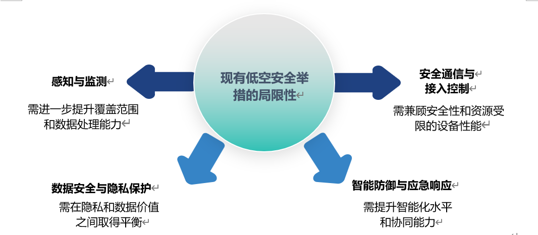 此外,新兴技术融合应用不足、实际应用与测试验证缺乏等问题也在一定程度上限制了低空安全技术的创新与应用。