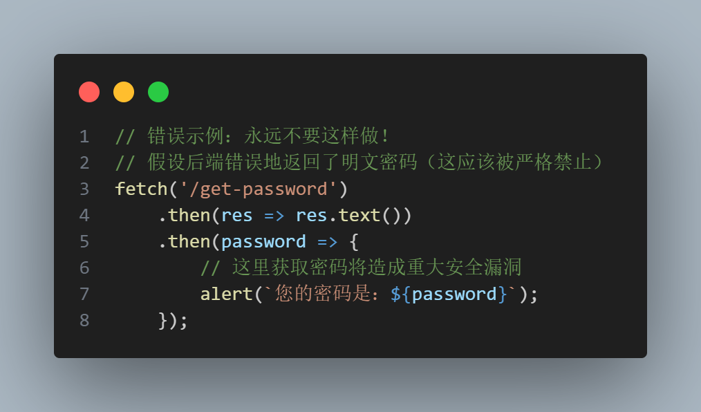即使系统存储了明文密码(再次强调:这很危险),在找回流程中直接返回密码仍存在风险: