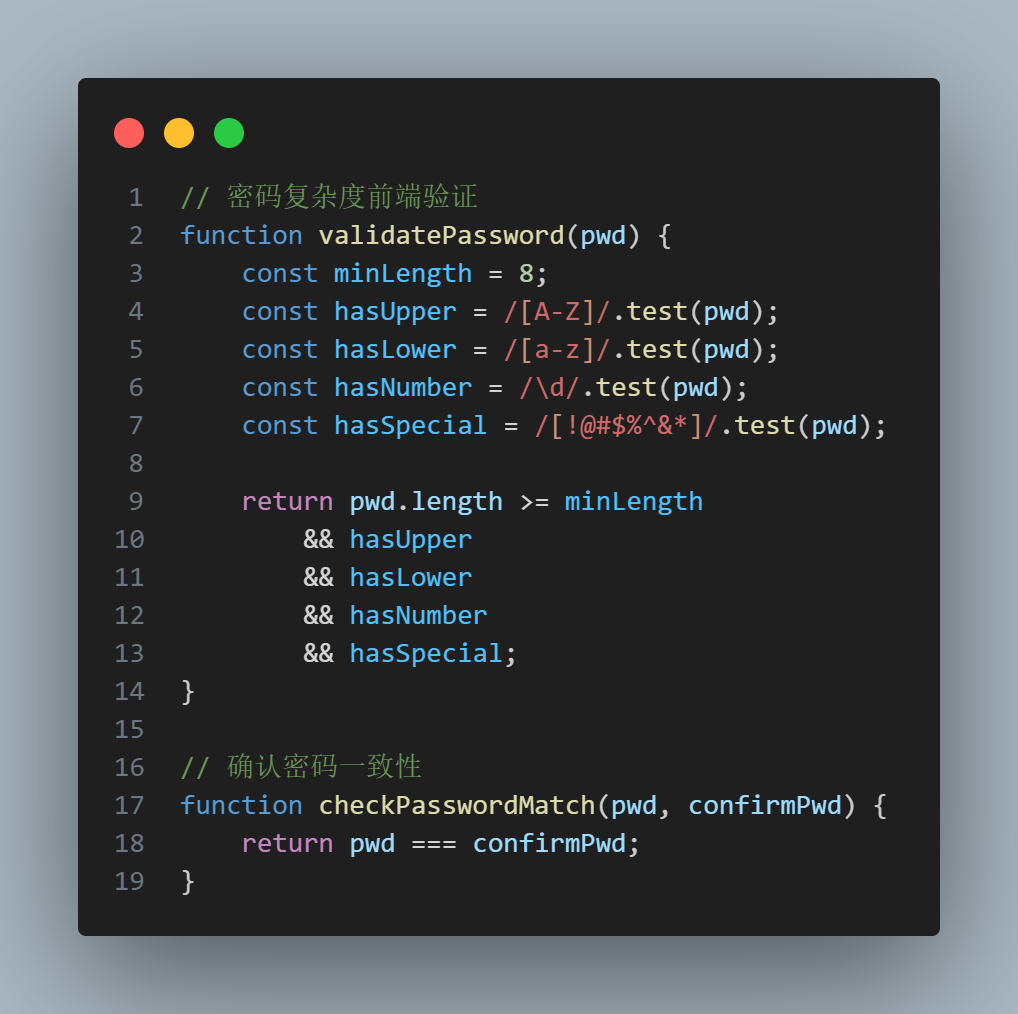 前端验证减少无效请求后端最终校验保证数据可靠性密码历史记录检查(后端实现)法律合规要求