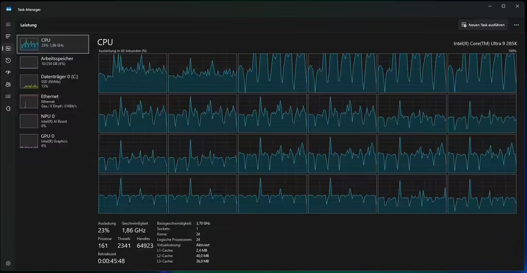 网友 Rüdiger 使用英特尔酷睿 Ultra 9 285K CPU 和华擎 Z890 Pro RS 主板组装了一台新电脑,并配备了 4 根 64GB 的内存,组成 256GB 内存。