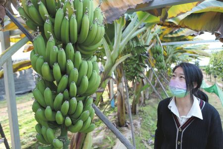 大棚内,成熟的香蕉挂满枝头,填补了北方无自产南方水果的空白。